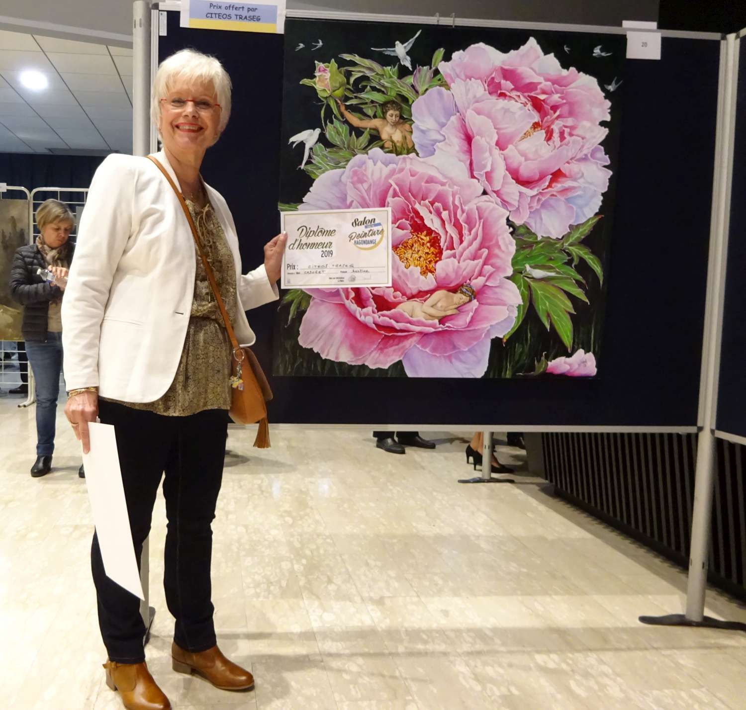 Cette année les 93 participants au Salon de la Peinture à Hagondange présentent généralement deux tableaux sur un thème libre. Ce salon international propose de nombreux prix offerts par la ville et des sponsors et c'est l'un d'eux qui a récompensé L'Envie une huile sur toile de Martine Cadoret.