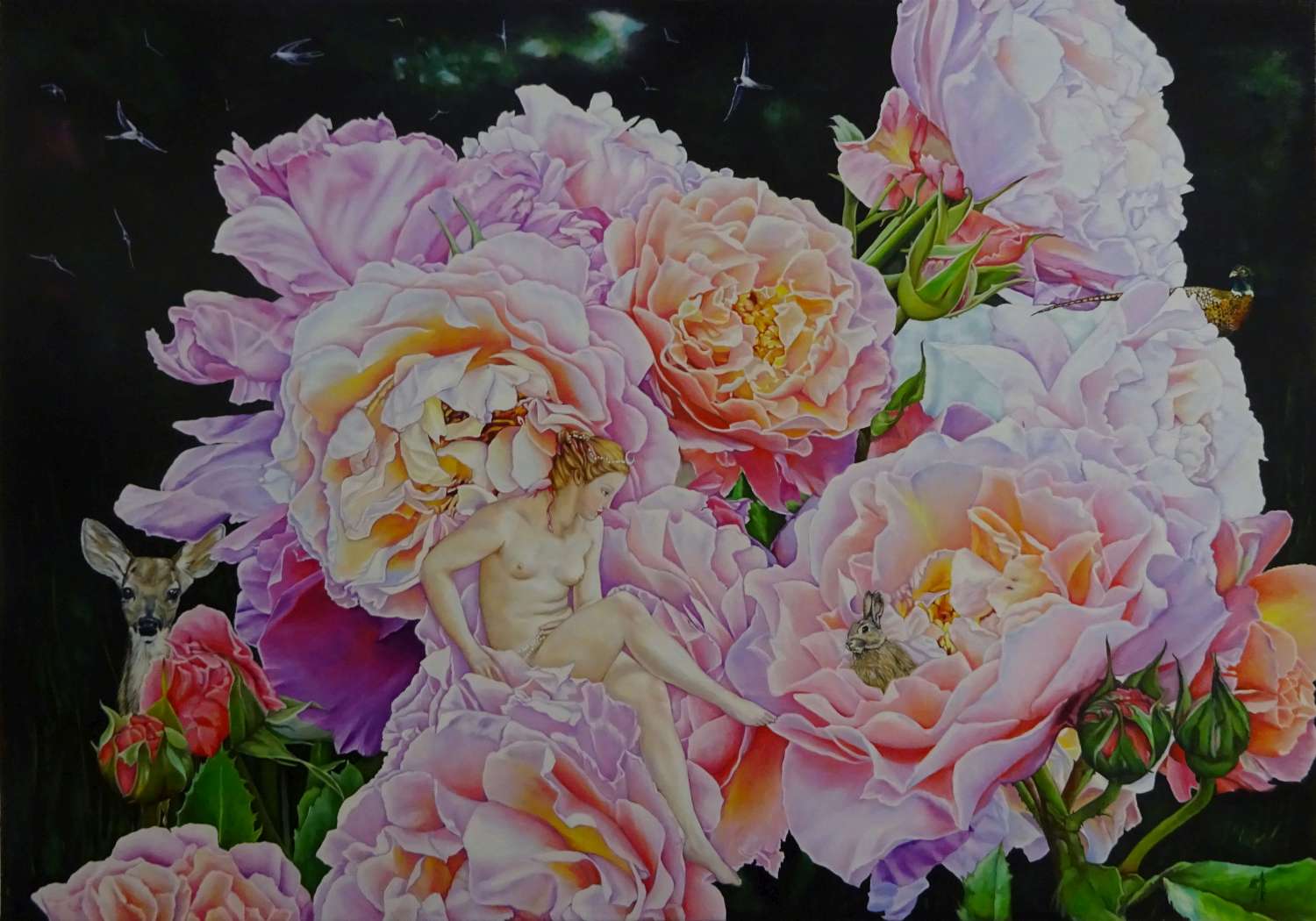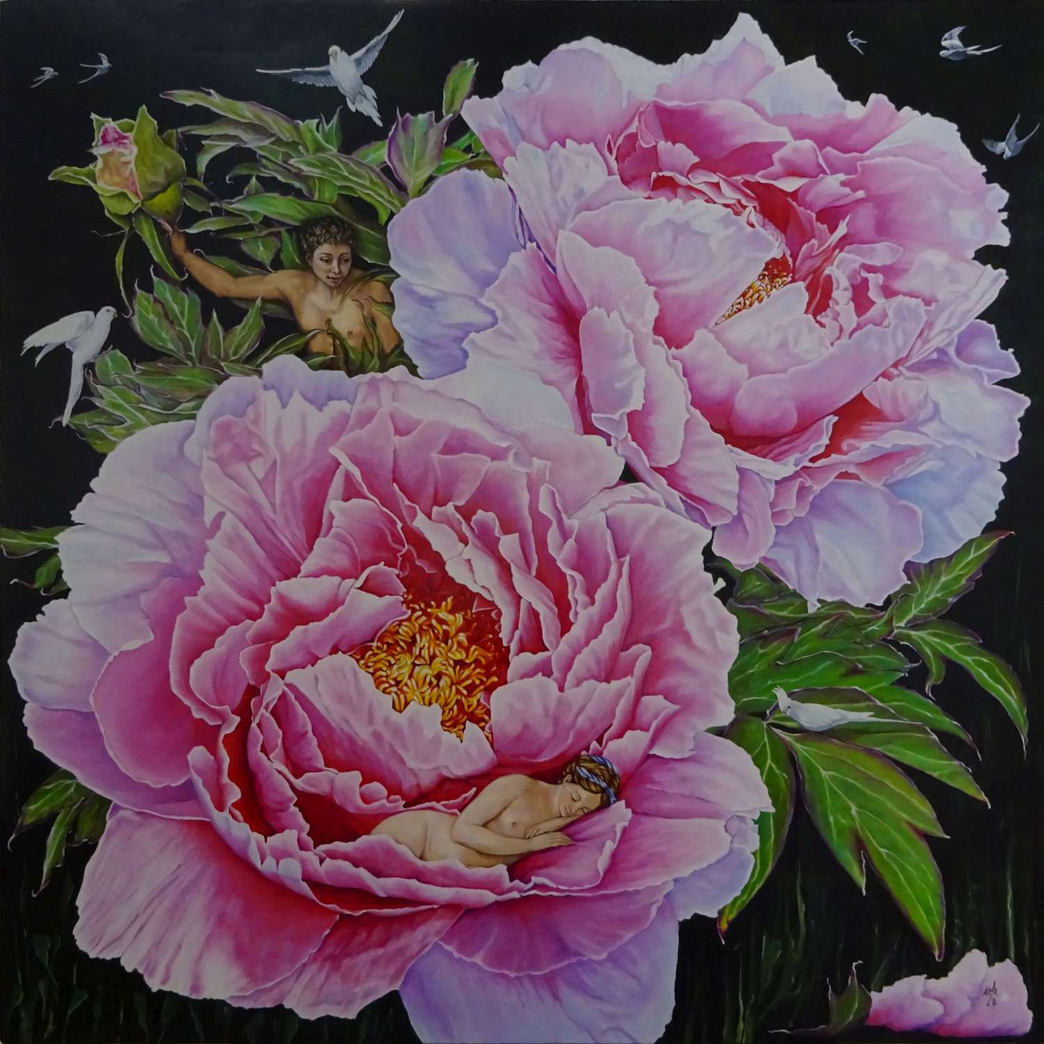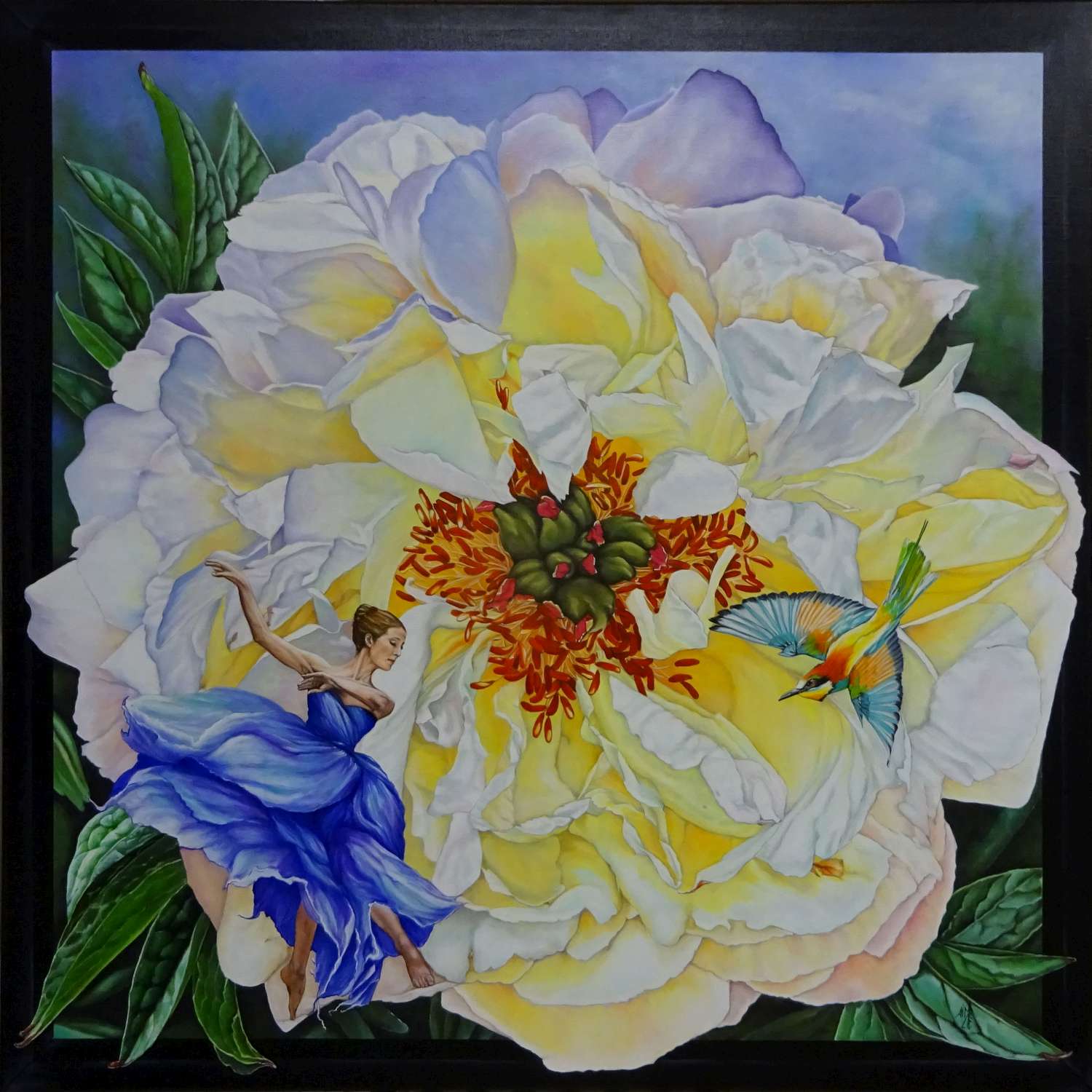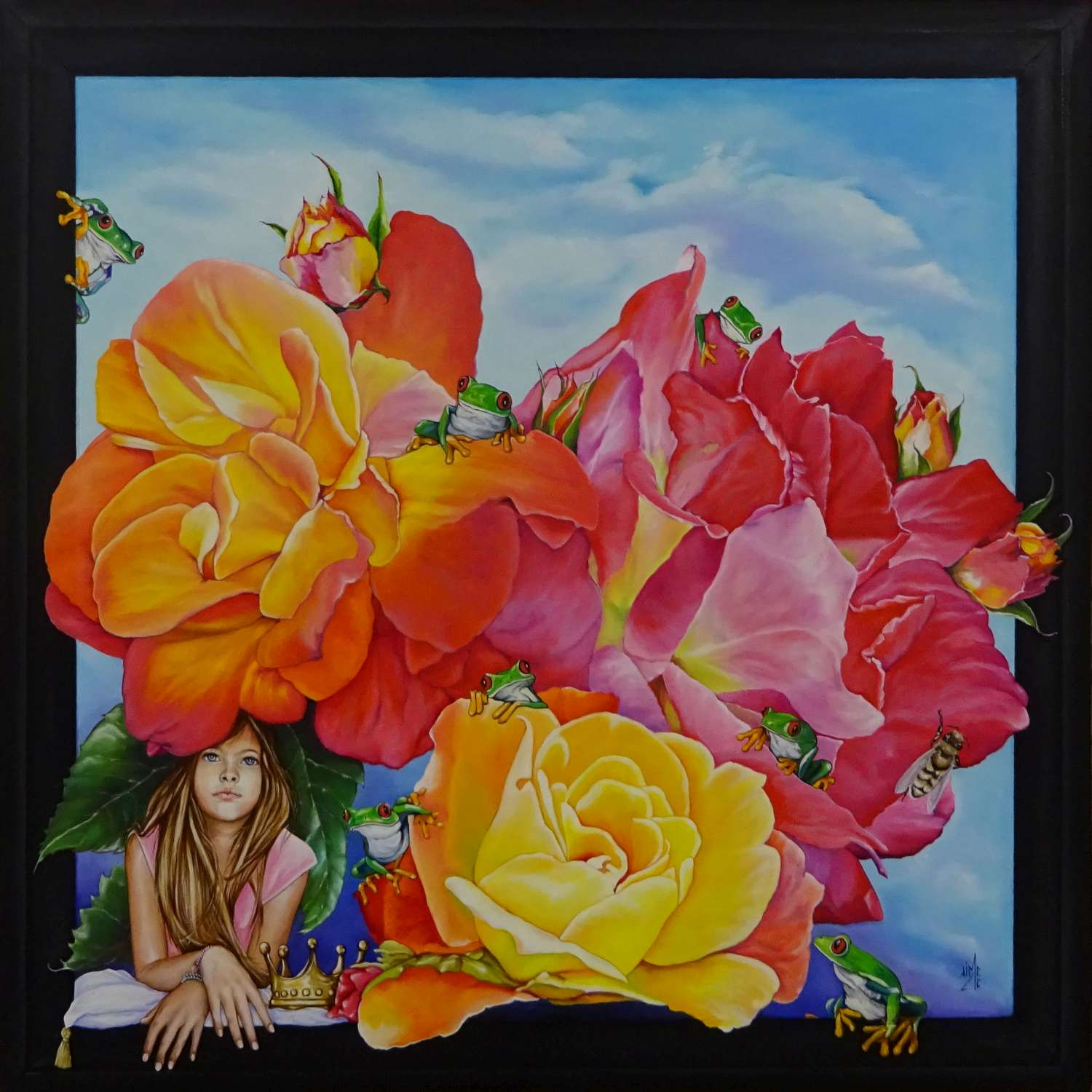 Huile sur toile 70x70 cm : (Cadre peint en trompe l'oeil)