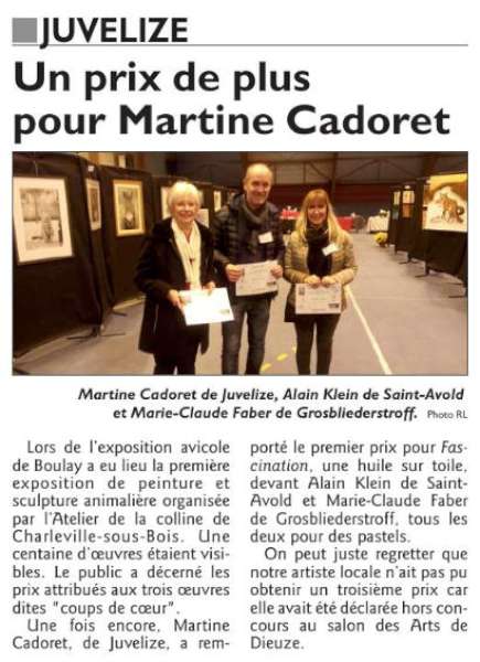 Martine Cadoret primée au salon des Artistes Lorrains...