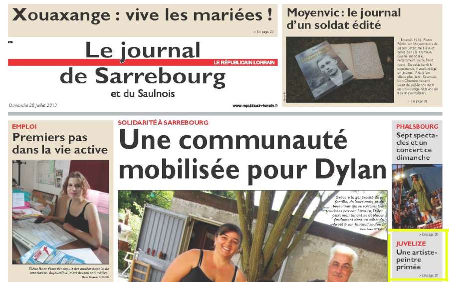 Républicain Lorrain du 28 juillet 2013 avec accroche à la Une :